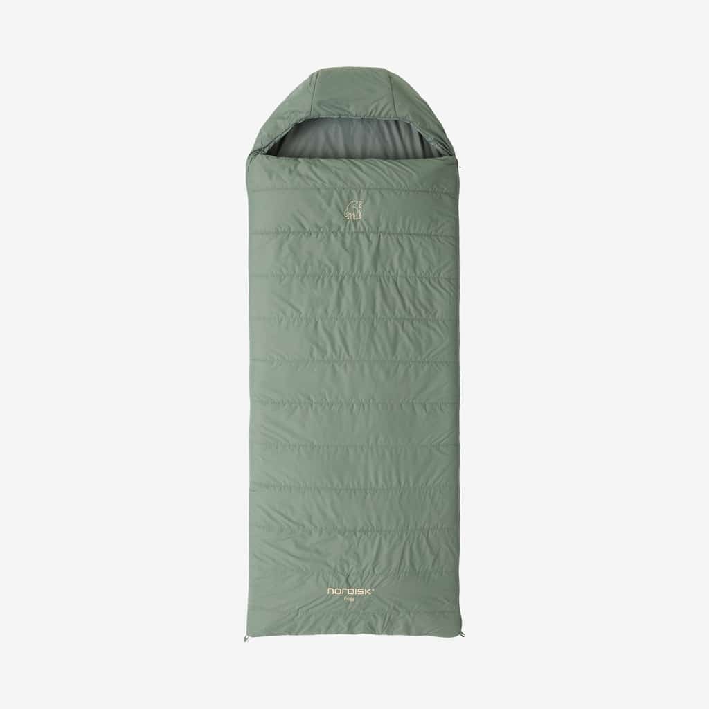 Frigg fra danske Nordisk er en blød og komfortabel sovepose, der giver en behagelig nattesøvn i varme sommermåneder. Den kan bruges både som traditionel sovepose og foldes helt ud som et tæppe, hvilket gør den ideel til både udendørs og indendørs brug.