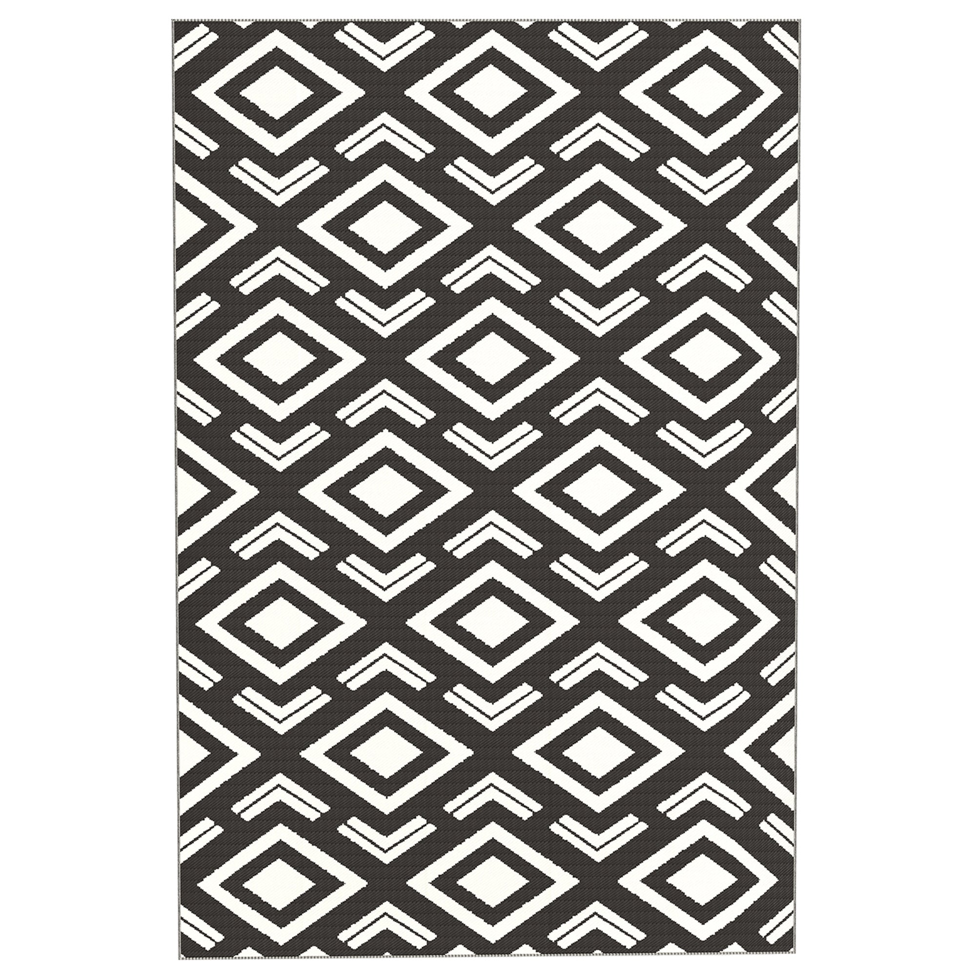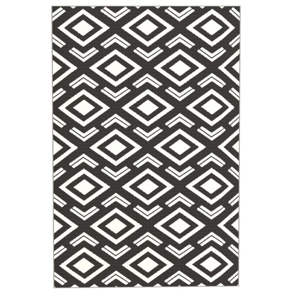 Udendørstæppe, robust, vejrbestandigt udendørstæppe med bærepose, foldbart, boho-stil tæppe 182 x 274 cm, sort og hvid